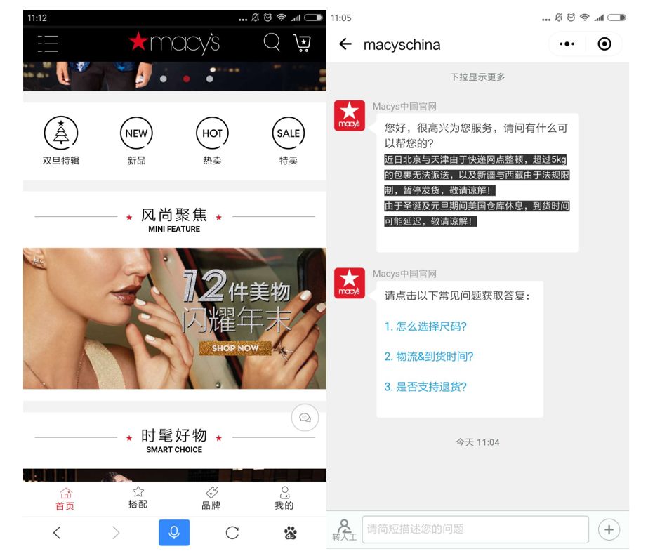 智齿客服合作客户“梅西百货”抢先对接了小程序“在线客服”功能