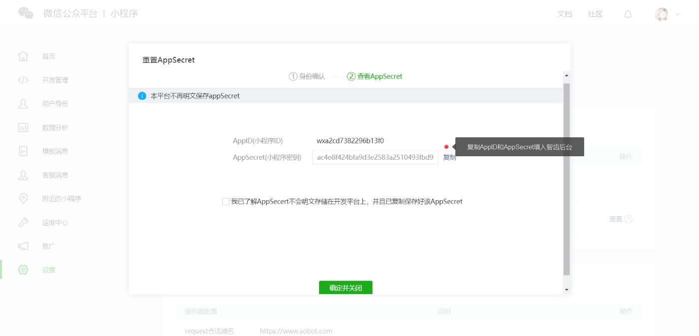 1、获取小程序ID和小程序密钥